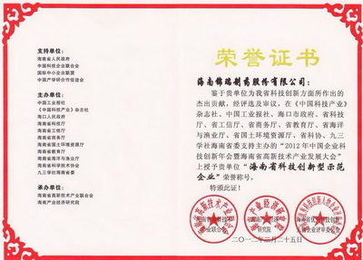 2012年3月25日,由《中国科技产业》杂志社、中国工业报社、海口市政府、省科技厅、省工信厅、省商务厅、省教育厅、省海洋与渔业厅、省国土环境资源厅、省科协、九三学社海南省委支持举办的“2012年中国企业科技创新年会暨海南省高新技术产业发展大会”在海口隆重召开;全国政协副主席阿不来提·阿不都热西提向大会发来贺信。