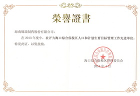公司获评“海口综合保税区人口和计划生育目标管理工作先进单位”