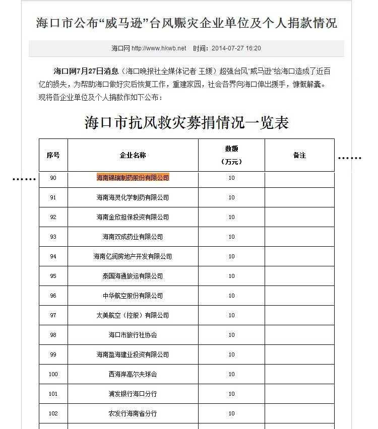 台风过后公司抓紧自救恢复生产,更心系灾区人民生活状况,紧急向海南灾区捐款10万元人民币,为帮助灾区同胞重建家园出一份力。