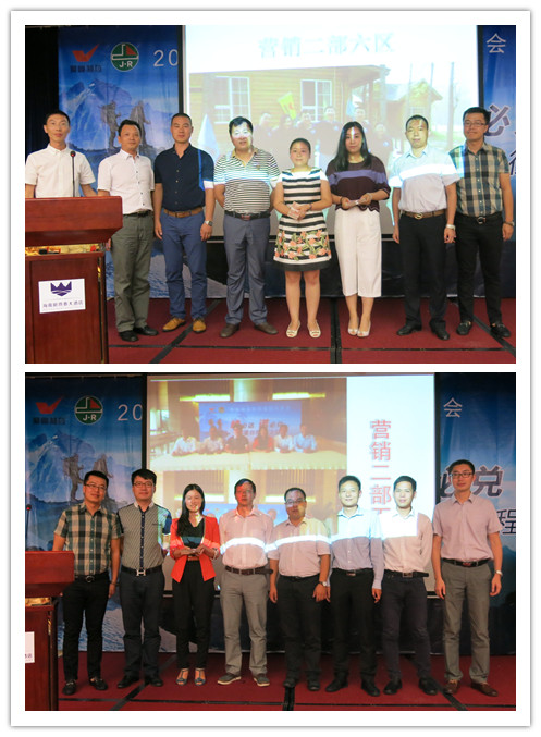 紧接着进行的销售部超级杯半年度PK赛的颁奖将会议推向了高潮,营销二部六区荣获第一名,营销二部五区位居第二,房军大区和黄颂大区带领着自己的团队上台领奖,承诺下半年再接再厉、再创佳绩!