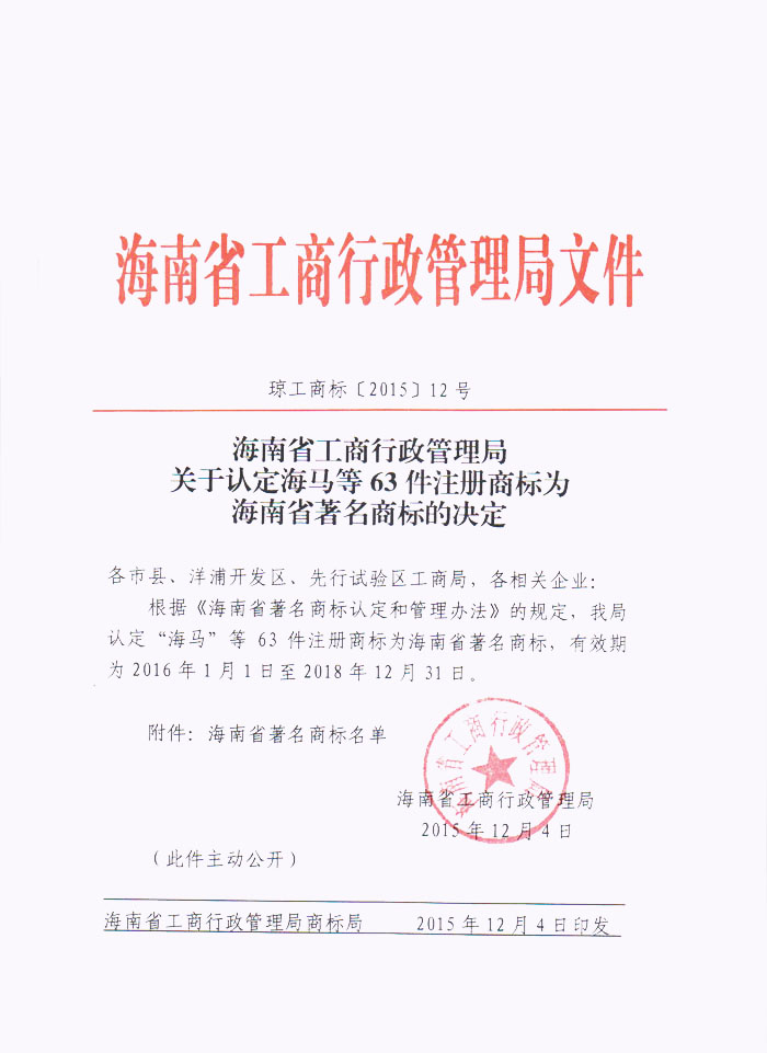 年度海南省著名商标。