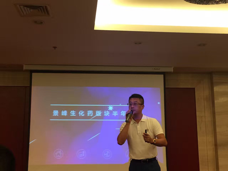 来自全国各地的营销人员及销售后台代表共计50余人参会。会议总结销售各部门上半年的工作成绩,部署下半年工作计划,并对在上半年工作中获得 “超级杯”的团队进行颁奖。会议以“创心•匠心•忠心”为主题,充分体现了销售人员面对挑战,面对压力,不畏艰难,勇于争先实现公司年初制定的目标之决心。景峰集团生化板块总裁、公司董事长罗斌、公司董事副总经理刘冬、副总经理王进宇出席会议,招标事务部、运营部、市场学术部等相关职能部门负责人参加会议。