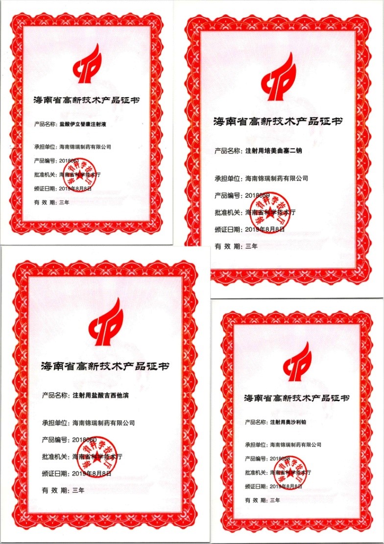 海南省科学技术厅是主管全省科技、外国专家工作的省政府组成部门。高新技术产品的认定是由海南省科技厅组织专家对受理的海南省高新技术产品进行评审,对通过评审通过的高新技术产品进行发文公布。高新技术产品的评审需要多个条件,其难度非常大,海南锦瑞此次又有四个产品都通过了高新技术评审,这说明了锦瑞的产品及技术创新工作都走到了各个企业的前列。