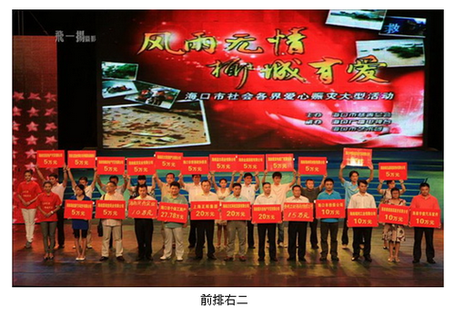 2010年10月12日,海南锦瑞制药股份有限公司参加由海南省委、省政府组织的“风雨同舟”大型赈灾义演晚会,并捐款10万元。